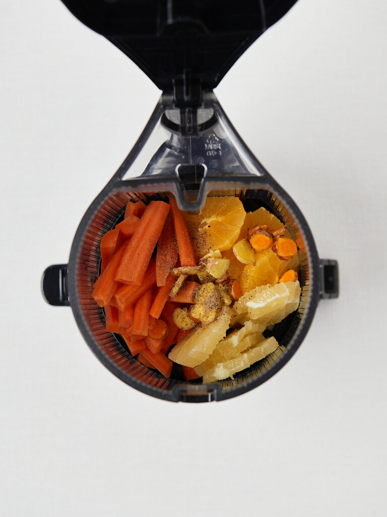 - Entsaften: Alles gemeinsam mit Kurkuma durch den Entsafter geben.