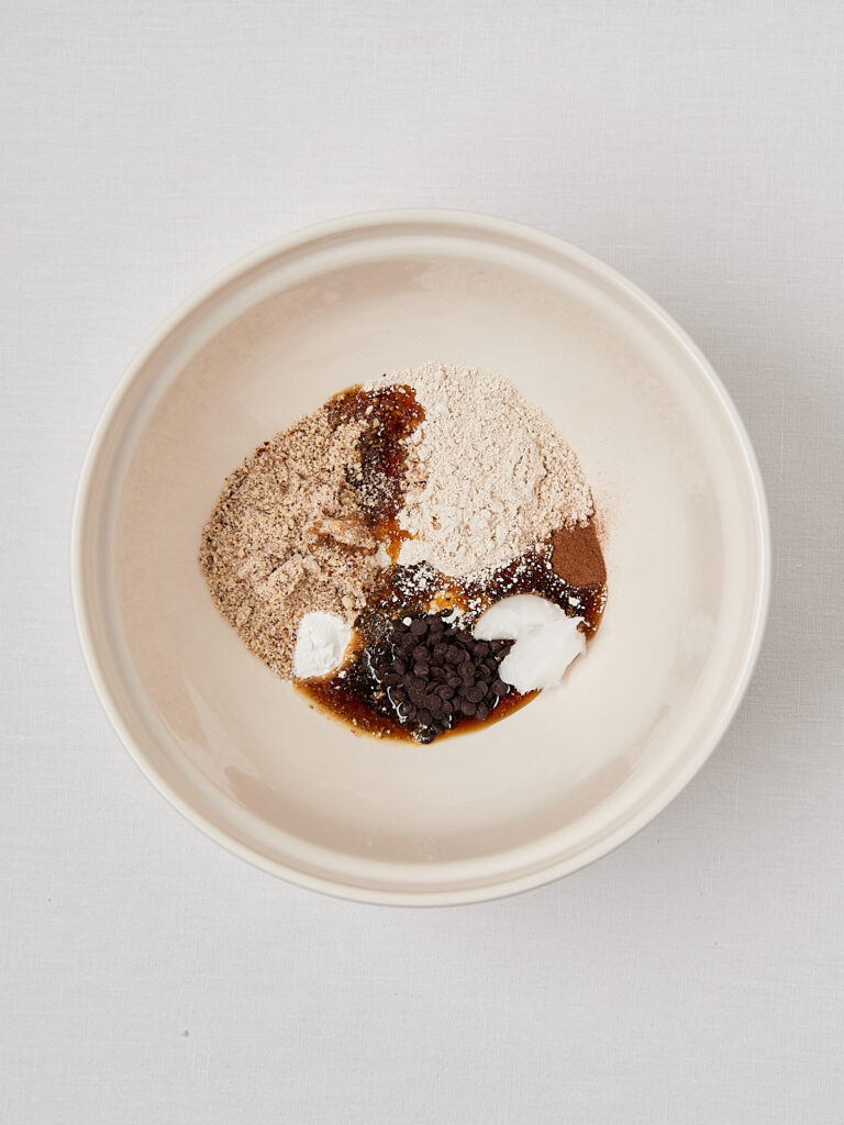• 1/4 Tasse dunkle Schokostückchen (85 %)
