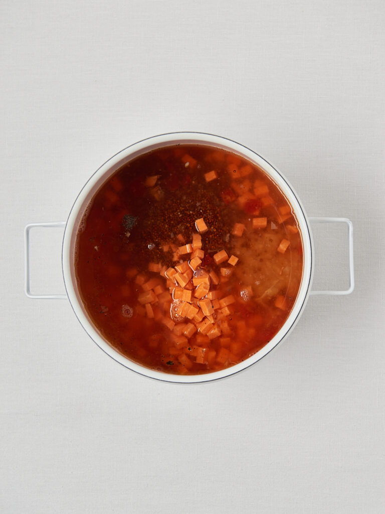 - Ca. 25–30 Min. köcheln lassen, bis alles weich ist.